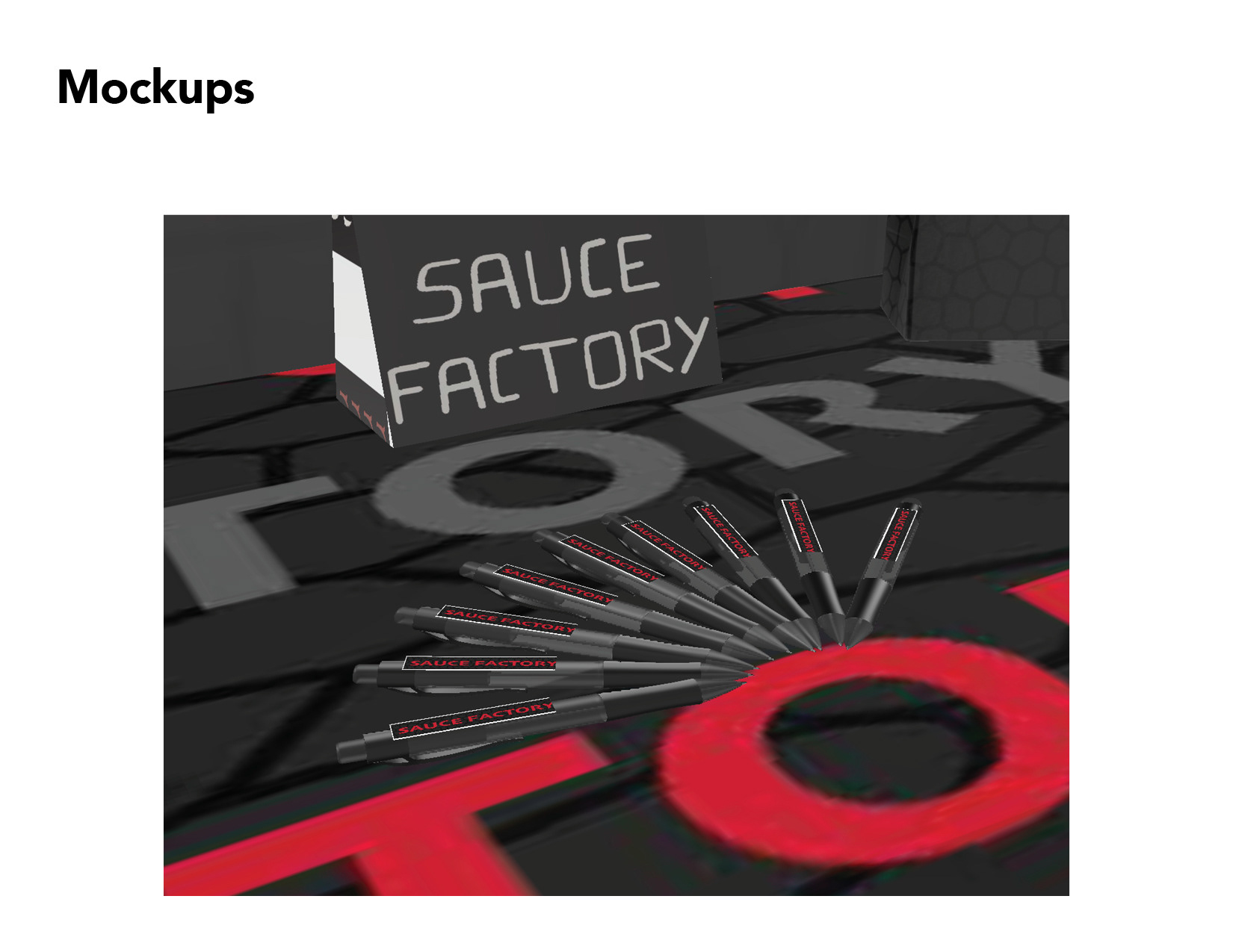 In this project I was to brand a fictional company called "sauce Factory" by creating a logo as well as assets that could be used in a tradeshow booth. All the mockups were to be created in Adobe Dimension